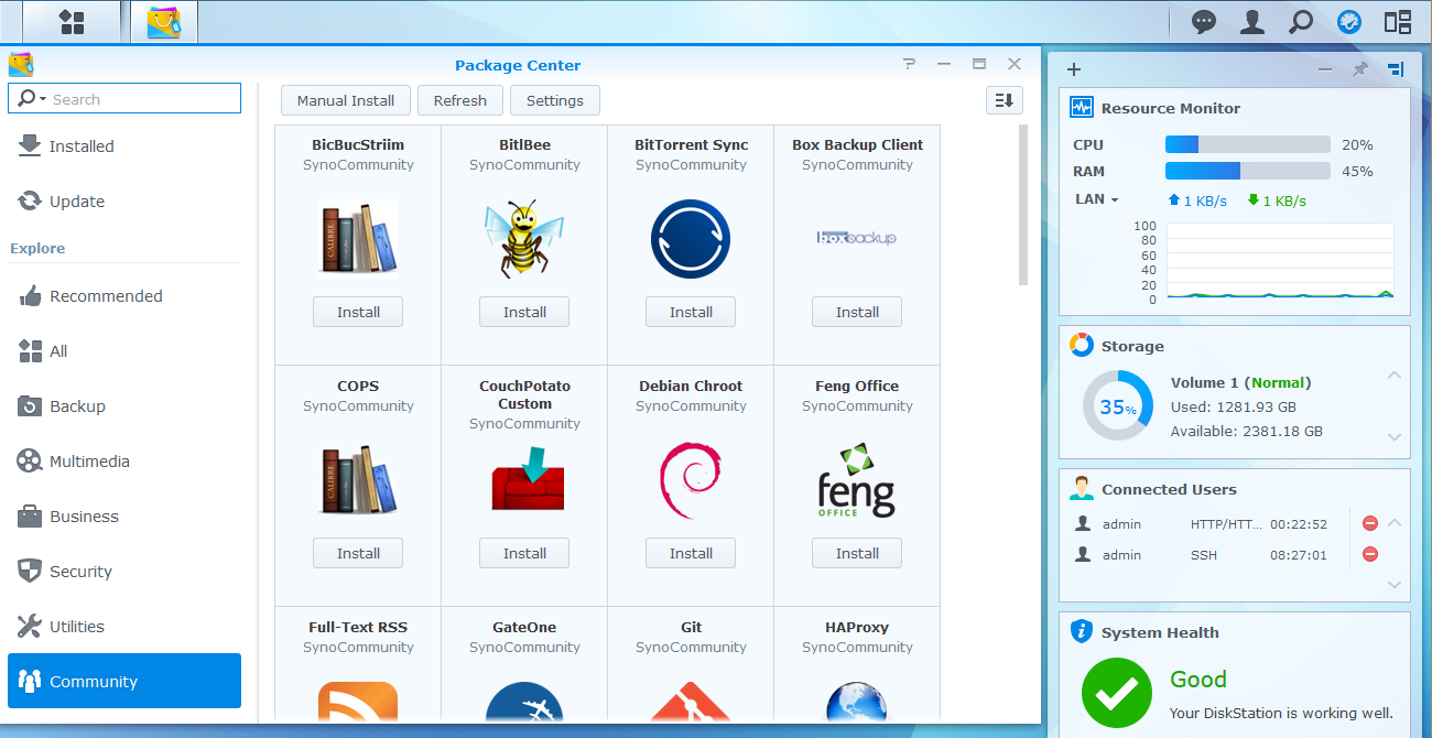Under Package Sources add a new one called SynoCommunity with the location http://packages.synocommunity.com/. Press ok