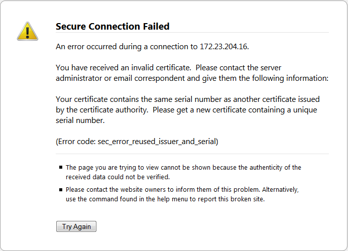 Unable to Connect Securely